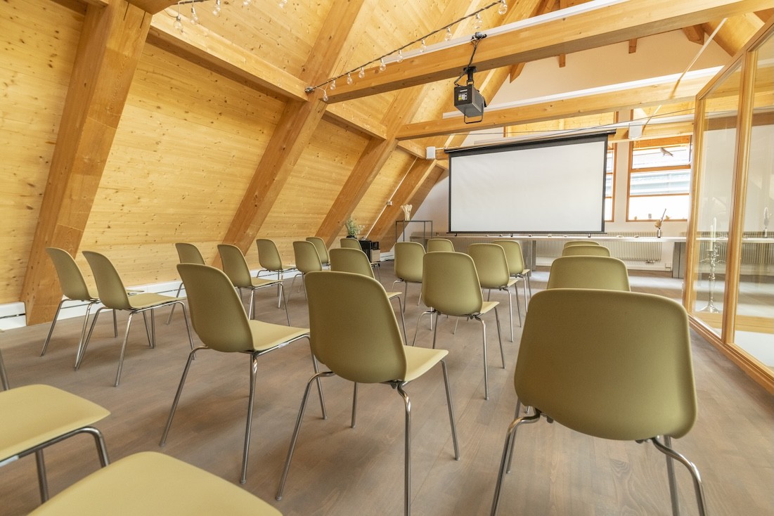 Was Sie erwartet? Ein lichtdurchfluteter Raum im Dachgebälk mit viel Holz, inspirierendem Ambiente und einer Ausstattung, die keine Wünsche offenlässt – ideal für Workshops, Teamevents, Seminare oder geschäftliche Retreats. Und falls gewünscht, wird aus dem Seminarraum am Abend im Handumdrehen ein stilvoller Ort für einen Apéro oder ein Dinner.