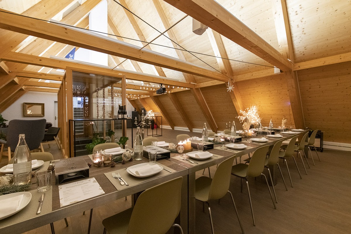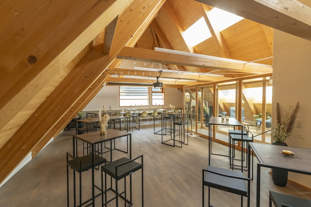 Was Sie erwartet? Ein lichtdurchfluteter Raum im Dachgebälk mit viel Holz, inspirierendem Ambiente und einer Ausstattung, die keine Wünsche offenlässt – ideal für Workshops, Teamevents, Seminare oder geschäftliche Retreats. Und falls gewünscht, wird aus dem Seminarraum am Abend im Handumdrehen ein stilvoller Ort für einen Apéro oder ein Dinner.